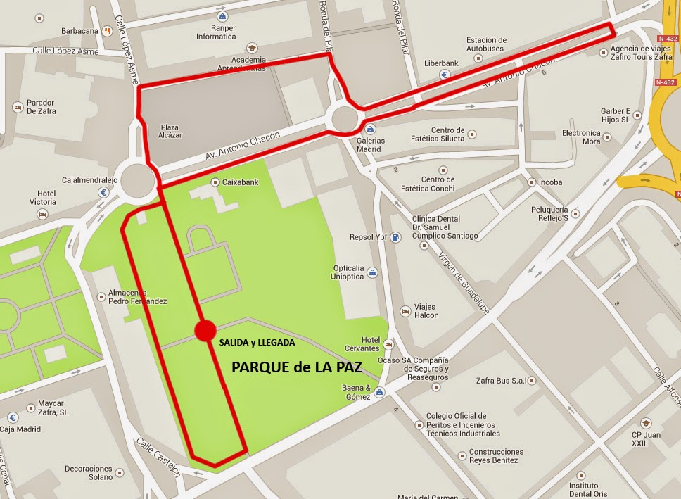 1. En este enlace podrás descargar todo el dossier informativo sobre la carrera descarga dossier 2. Aquí os dejamos la ficha de inscripción descarga de ficha 3. Este es el recorrido que oscila según la categoría. Un circuito completamente urbano, con salida y meta en el Parque de la Paz de Zafra. |